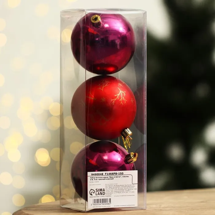 Шары ёлочные новогодние «Верь в мечту!», пластик, d=8, 3 шт., красные, винные — Характеристики