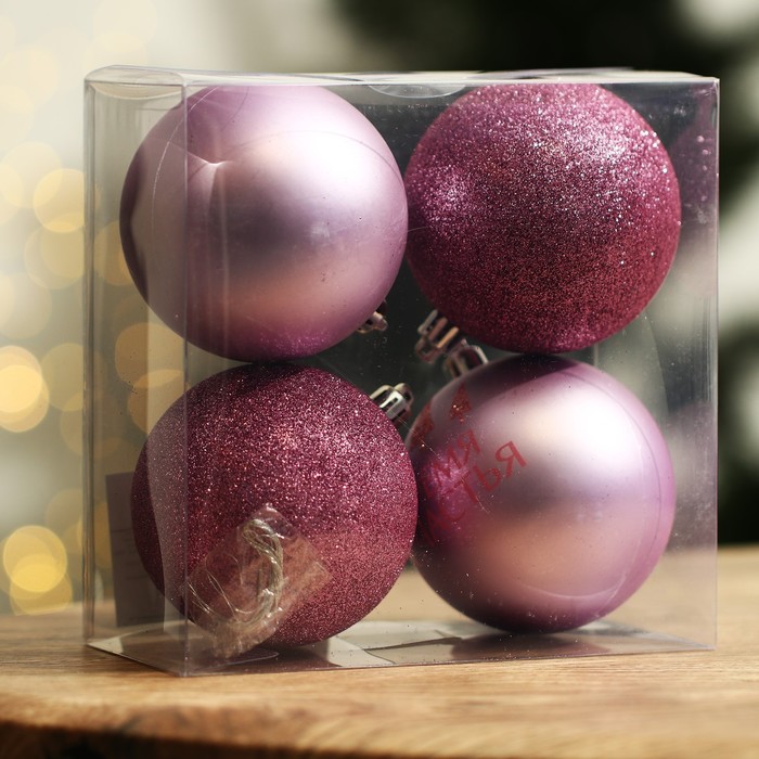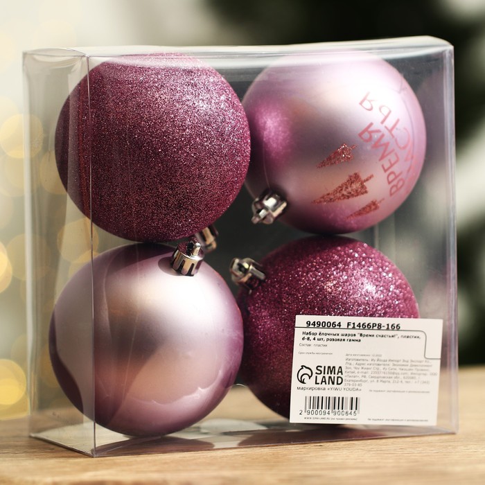 Шары ёлочные новогодние «Время счастья!», пластик, d=8, 4 шт., розовые — Характеристики