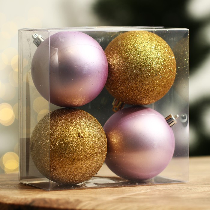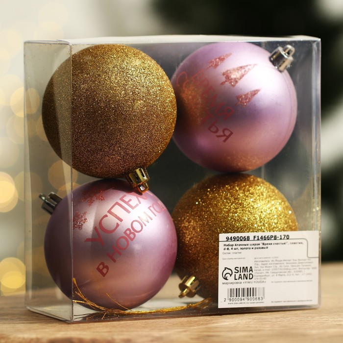 Шары ёлочные новогодние «Время счастья!», пластик, d=8, 4 шт., золотой, розовый — Характеристики