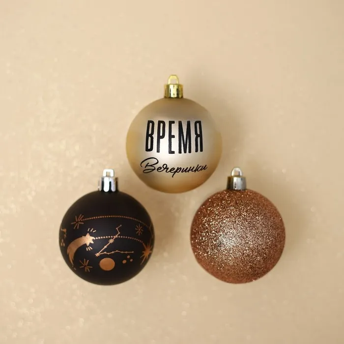 Шары ёлочные новогодние «Время вечеринки», пластик, d=6, 3 шт., чёрные, жемчужные — Характеристики