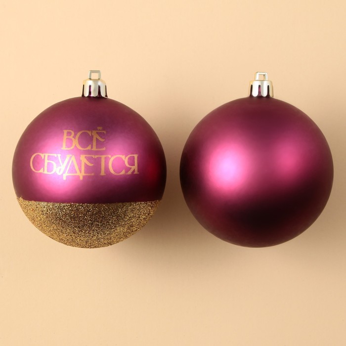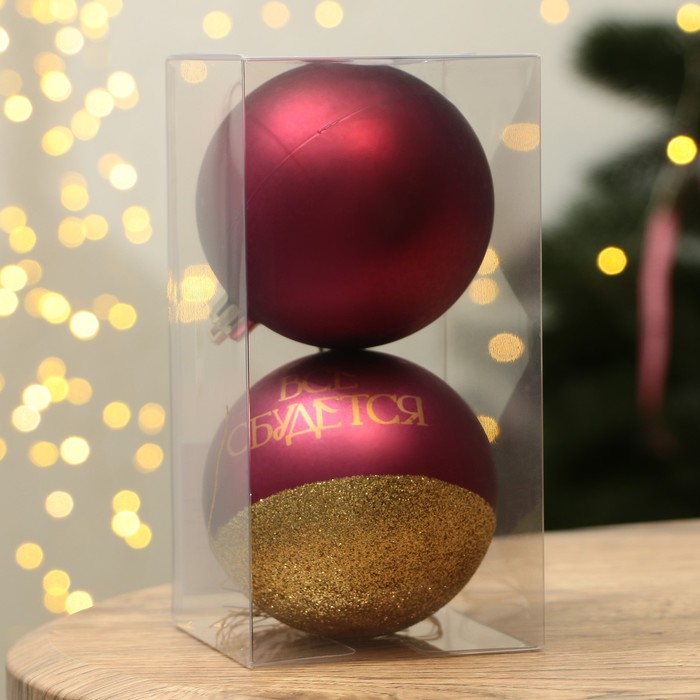 Шары ёлочные новогодние «Всё сбудется!», пластик, d=8, 2 шт., винные