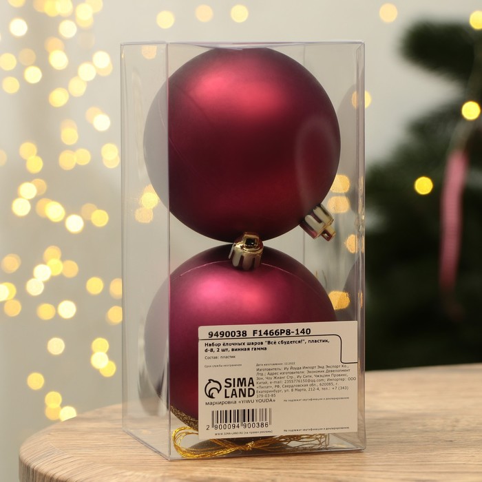 Шары ёлочные новогодние «Всё сбудется!», пластик, d=8, 2 шт., винные — Характеристики