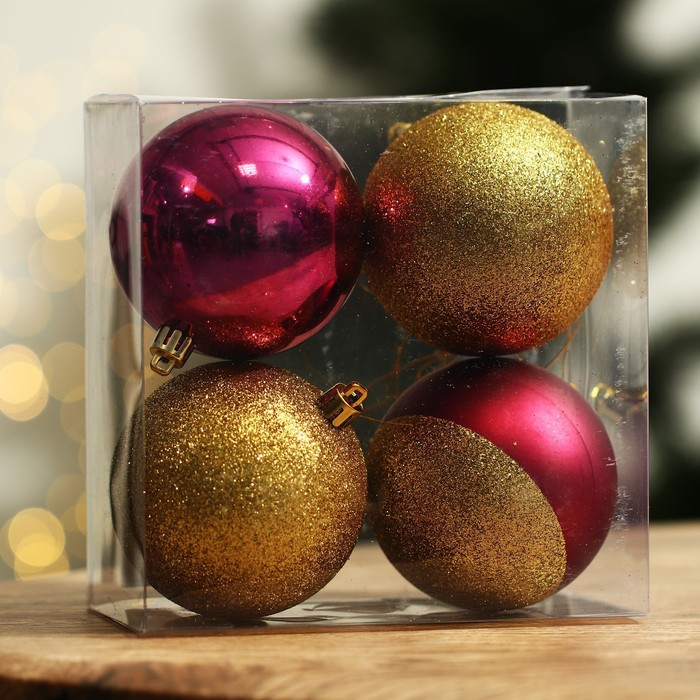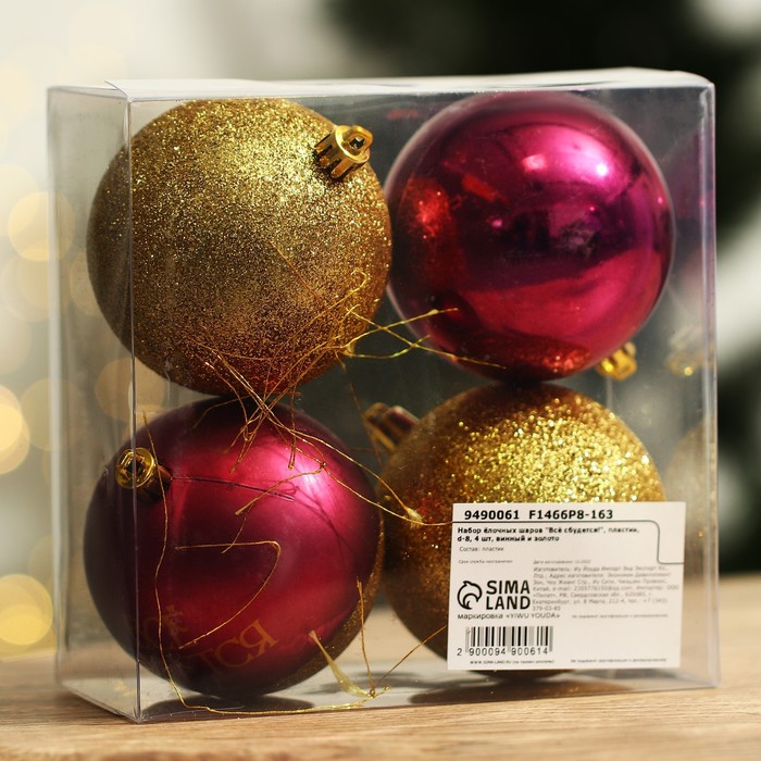 Шары ёлочные новогодние «Всё сбудется!», пластик, d=8, 4 шт., винный, золотой — Характеристики