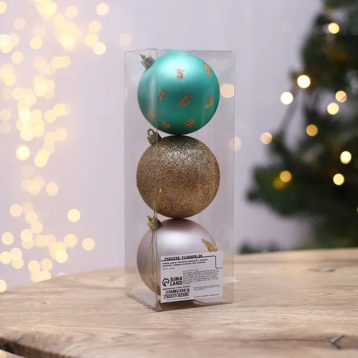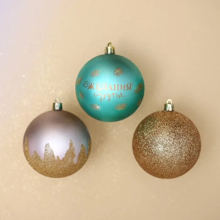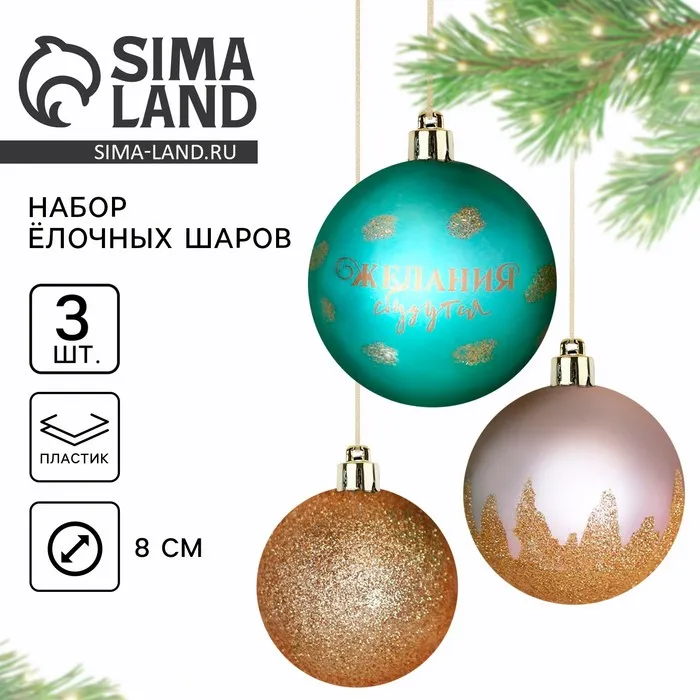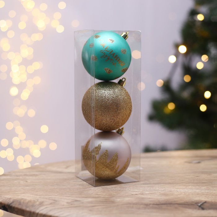 Шары ёлочные новогодние «Желания сбудутся!», на Новый год, пластик, d=8, 3 шт., розовые, тиффани, золотые — Характеристики