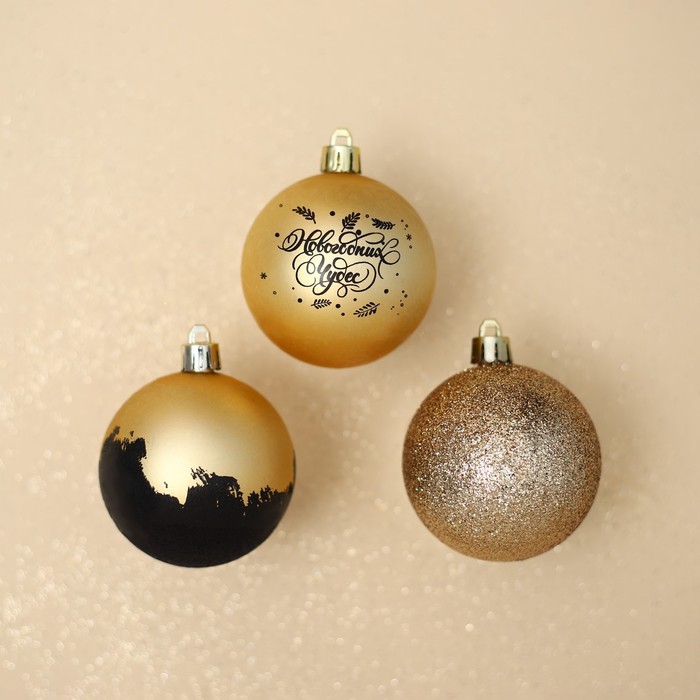 Шары ёлочные «Новогодних чудес», пластик, d=6, 3 шт., цвет золотой — Характеристики