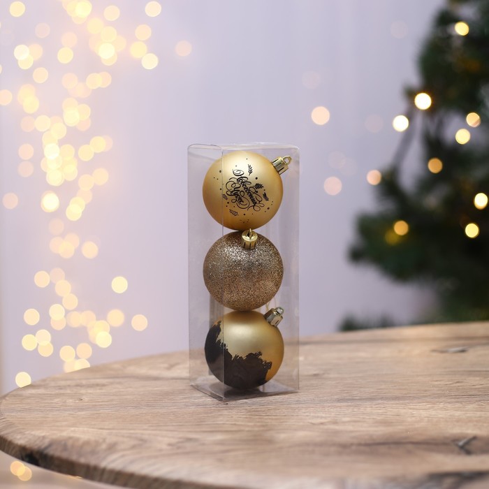 Шары ёлочные «Новогодних чудес», пластик, d=6, 3 шт., цвет золотой
