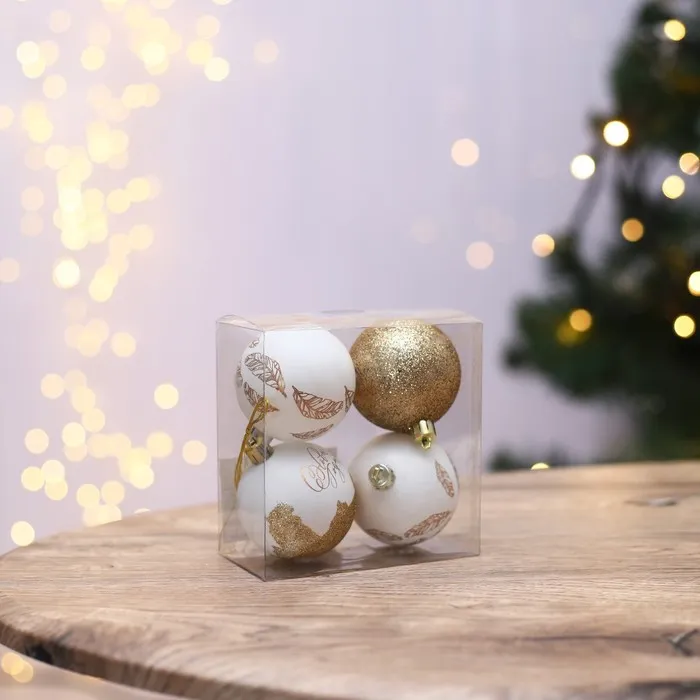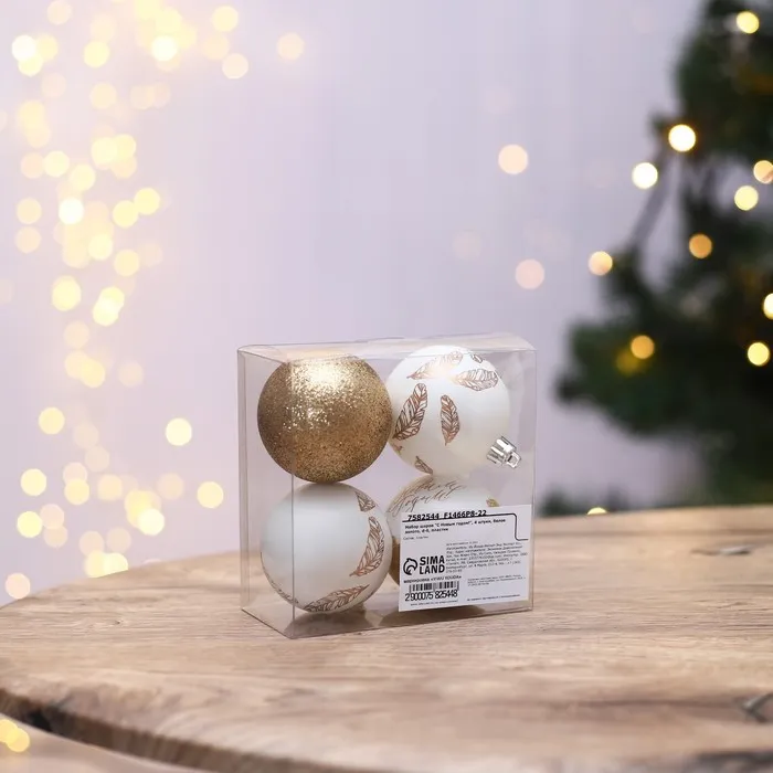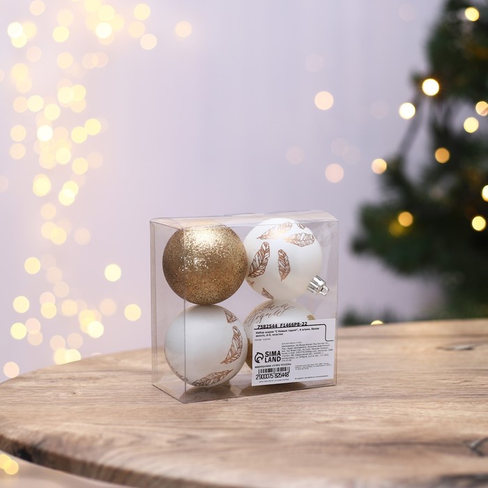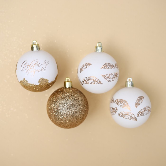 Шары ёлочные «С Новым годом!», пластик, d=6, 4 шт., белые, золотые — Характеристики