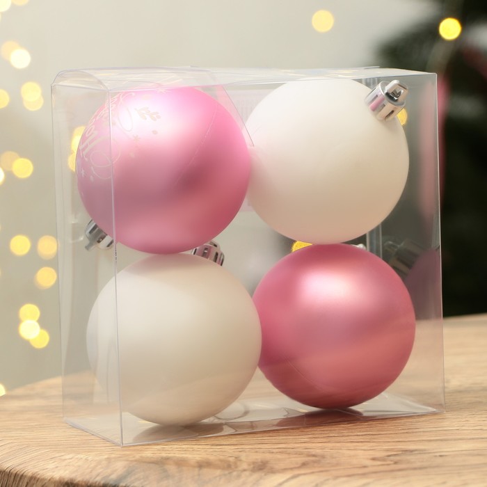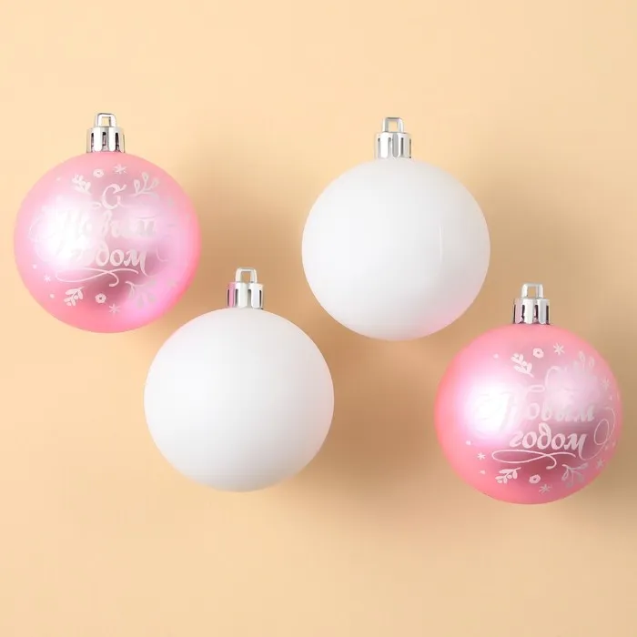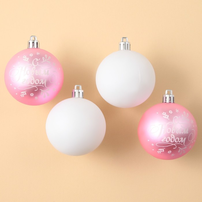 Шары ёлочные «С Новым годом!», пластик, d=6, 4 шт., розовые, белые