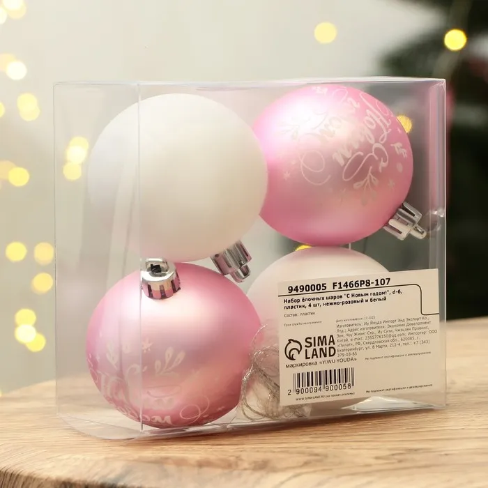 Шары ёлочные «С Новым годом!», пластик, d=6, 4 шт., розовые, белые — Характеристики