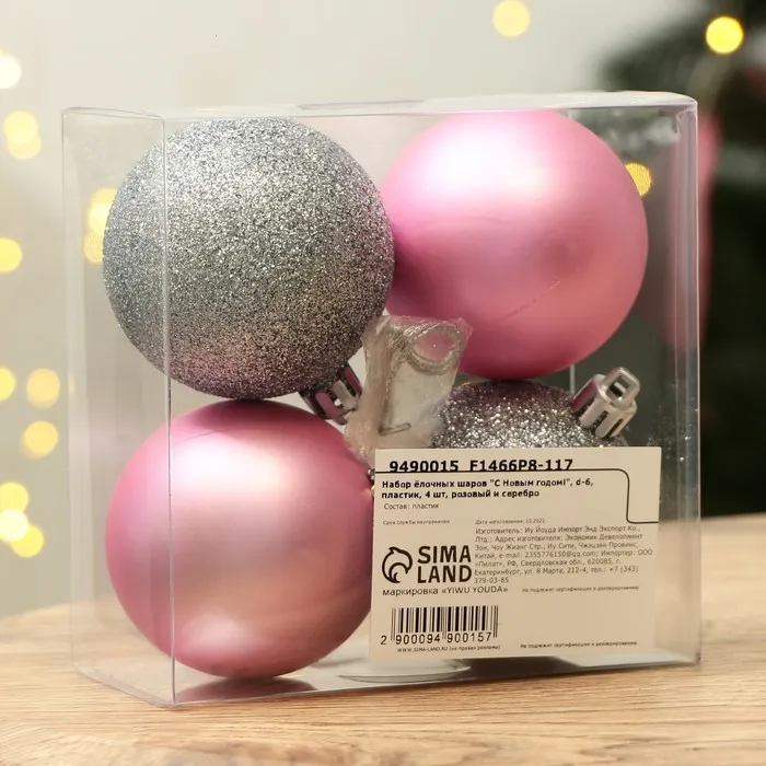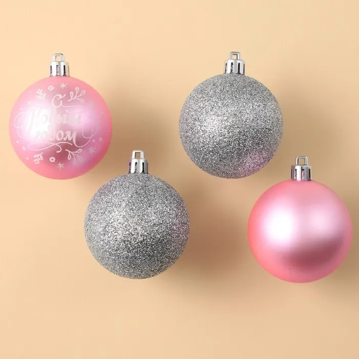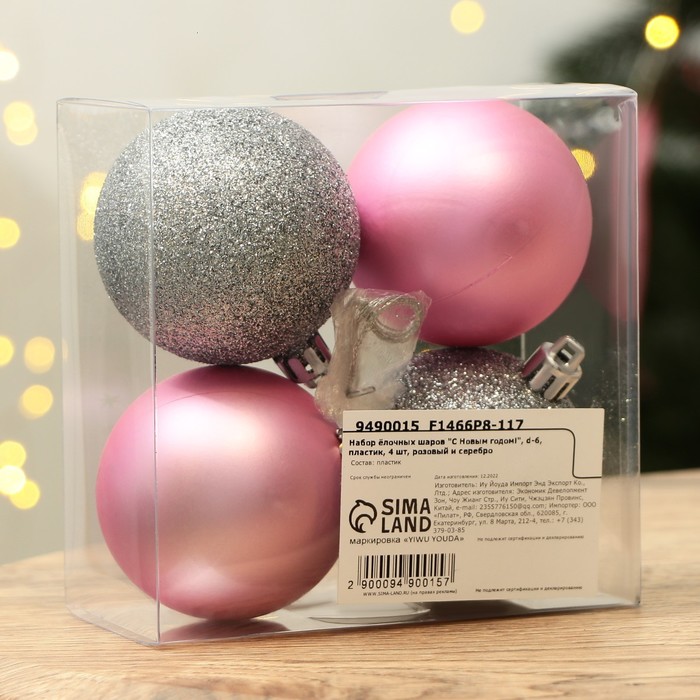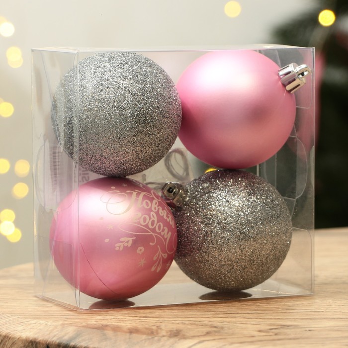 Шары ёлочные «С Новым годом!», пластик, d=6, 4 шт., розовые, серебристые — Характеристики