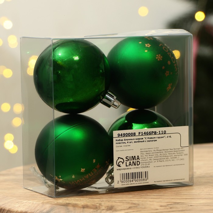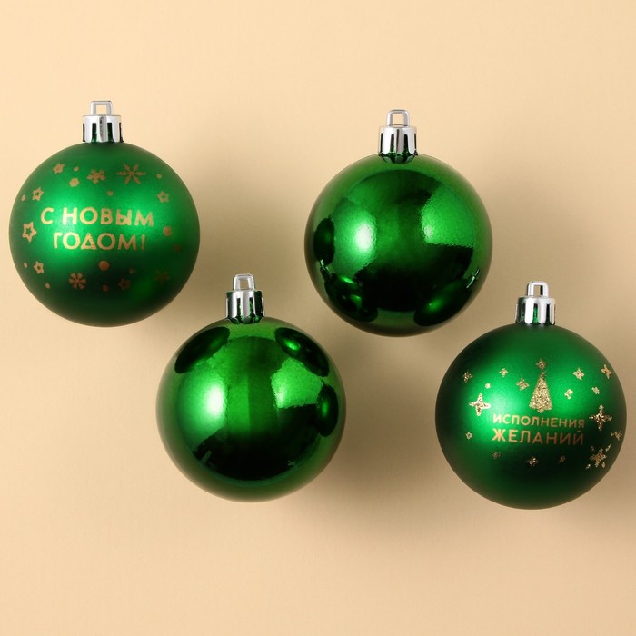 Шары ёлочные «С Новым годом!», пластик, d=6, 4 шт., зелёные — Характеристики
