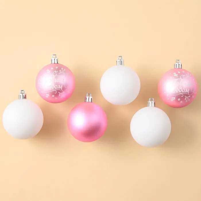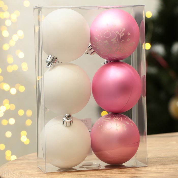 Шары ёлочные «С Новым годом!», пластик, d=6, 6 шт., розовые, белые