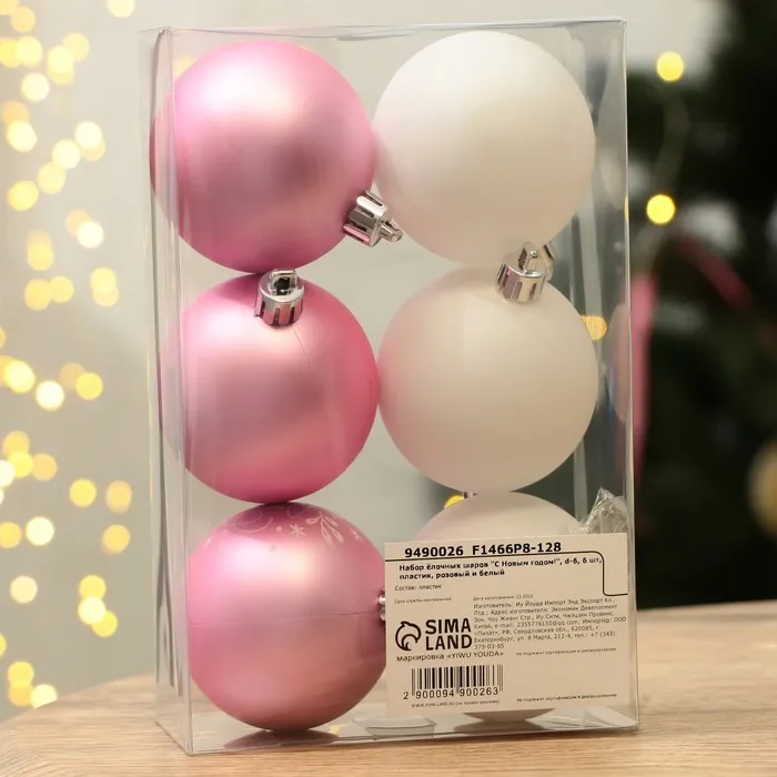 Шары ёлочные «С Новым годом!», пластик, d=6, 6 шт., розовые, белые — Характеристики