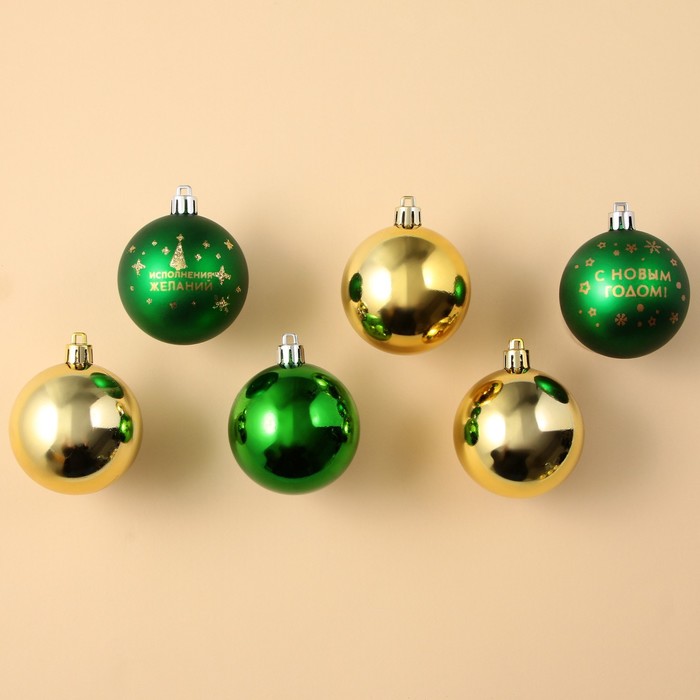 Шары ёлочные «С Новым годом!», пластик, d=6, 6 шт., зелёный, золотой