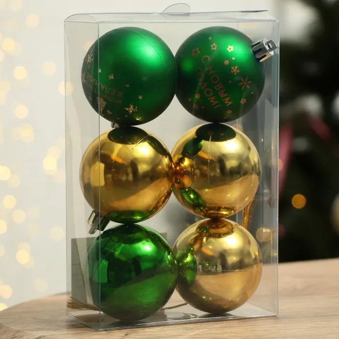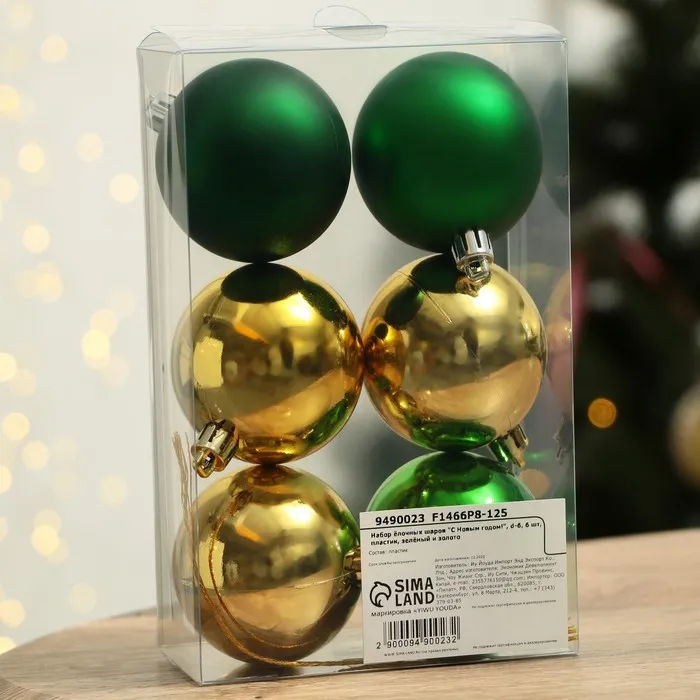 Шары ёлочные «С Новым годом!», пластик, d=6, 6 шт., зелёный, золотой — Характеристики
