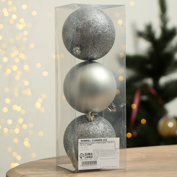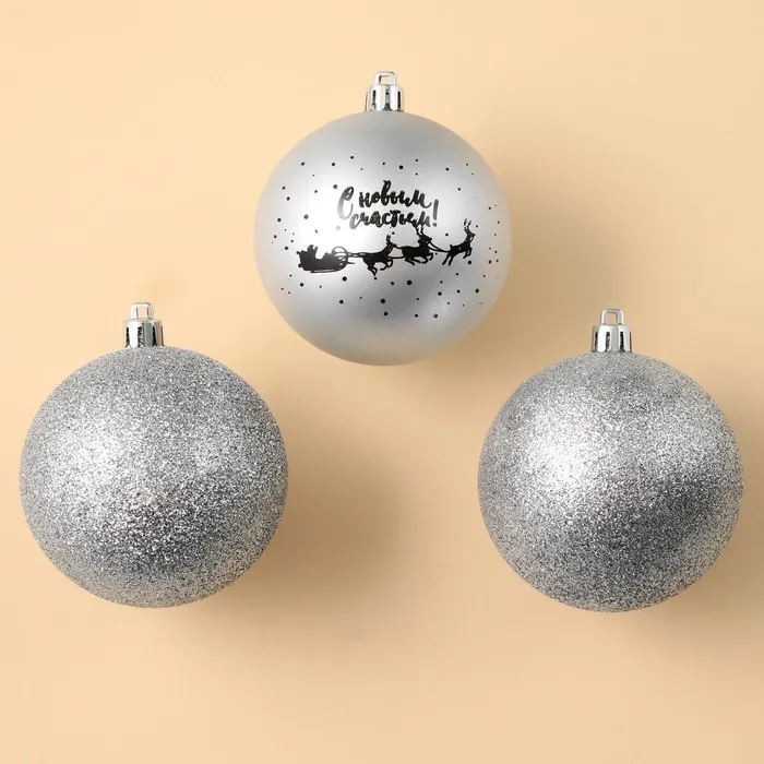 Шары ёлочные «С Новым годом!», пластик, d=8, 3 шт., серебристые — Характеристики