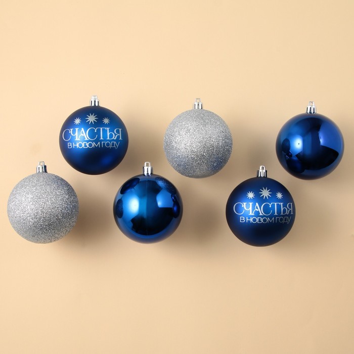 Шары ёлочные «Счастья в Новом году!», пластик, d=8, 6 шт., синие, серебристые