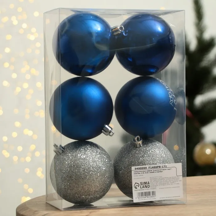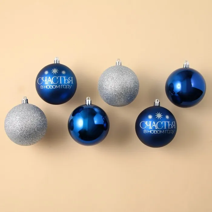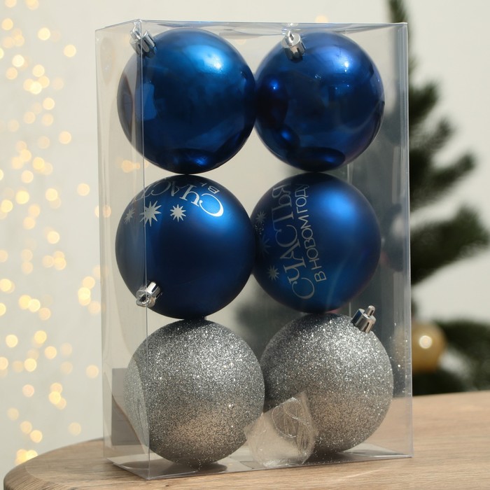 Шары ёлочные «Счастья в Новом году!», пластик, d=8, 6 шт., синие, серебристые — Характеристики