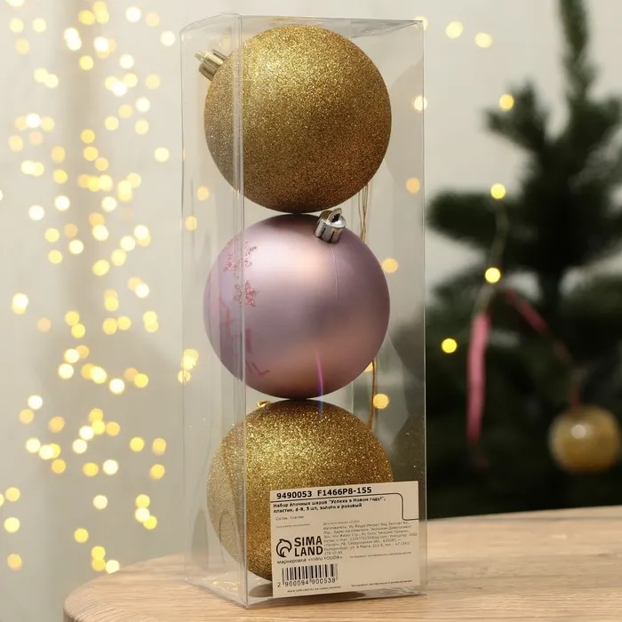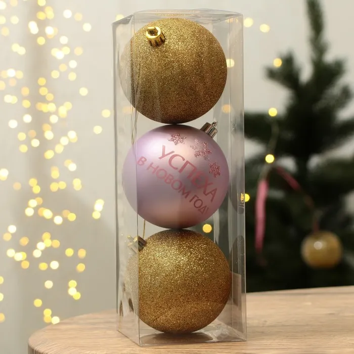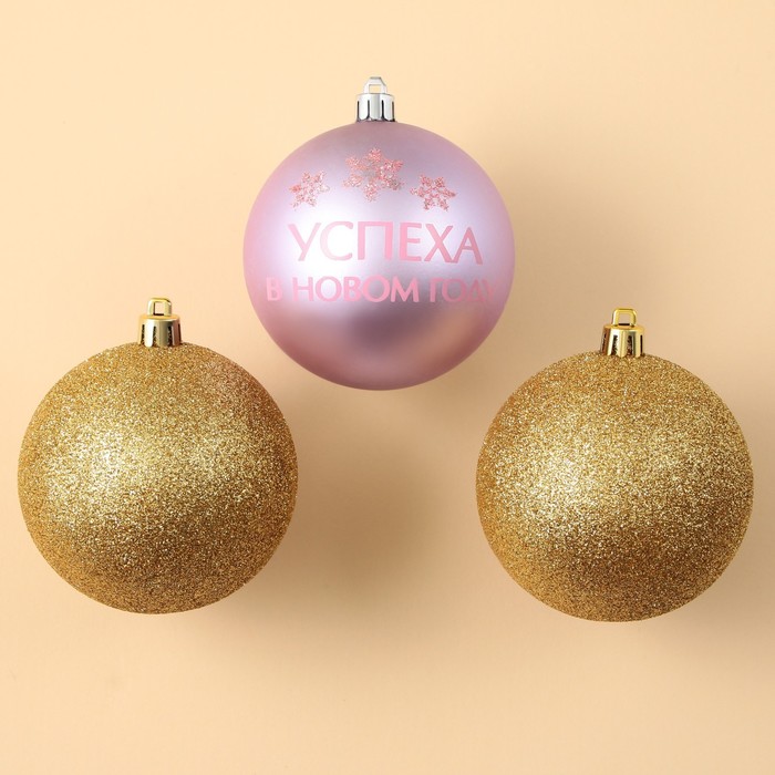 Шары ёлочные «Успеха в Новом году!», пластик, d=8, 3 шт., золотой, розовый — Характеристики