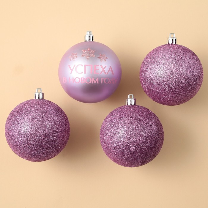 Шары ёлочные «Успеха в Новом году!», пластик, d=8, 4 шт., розовые
