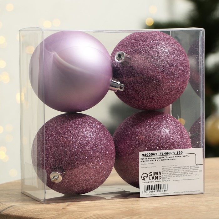 Шары ёлочные «Успеха в Новом году!», пластик, d=8, 4 шт., розовые — Характеристики