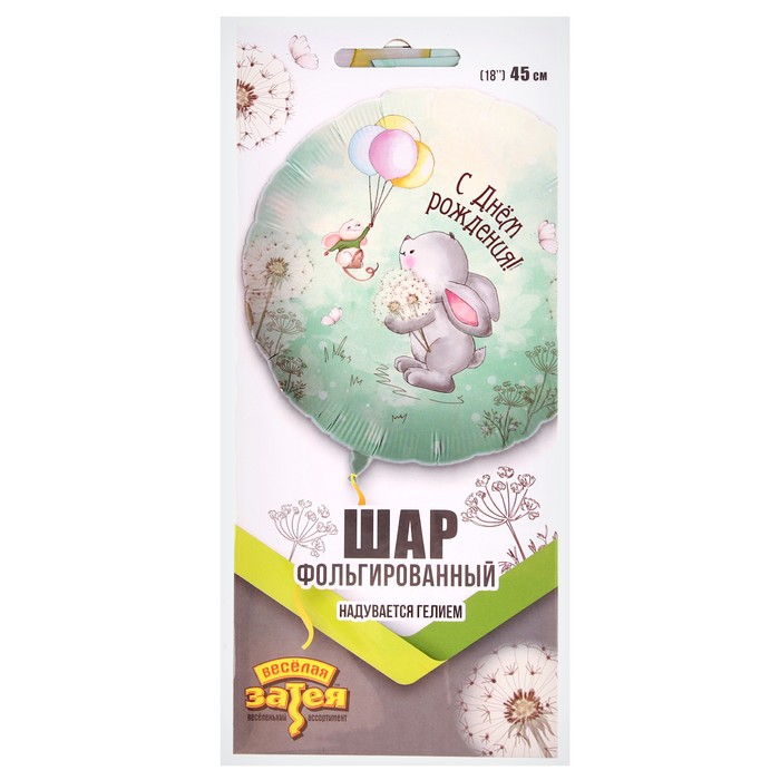 Шары воздушные фольгированные 18" «Зайка с одуванчиками» — Характеристики