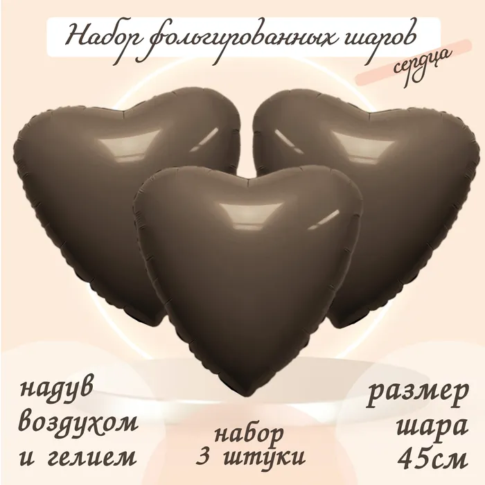 Шары воздушные фольгированные 19" «Сердце», цвет мистик какао, набор 3 шт. — Характеристики