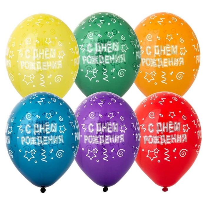 Шары воздушные латексные 14" «С днём рождения», серпантин, кристалл, шелкография, набор 25 шт., МИКС — Характеристики