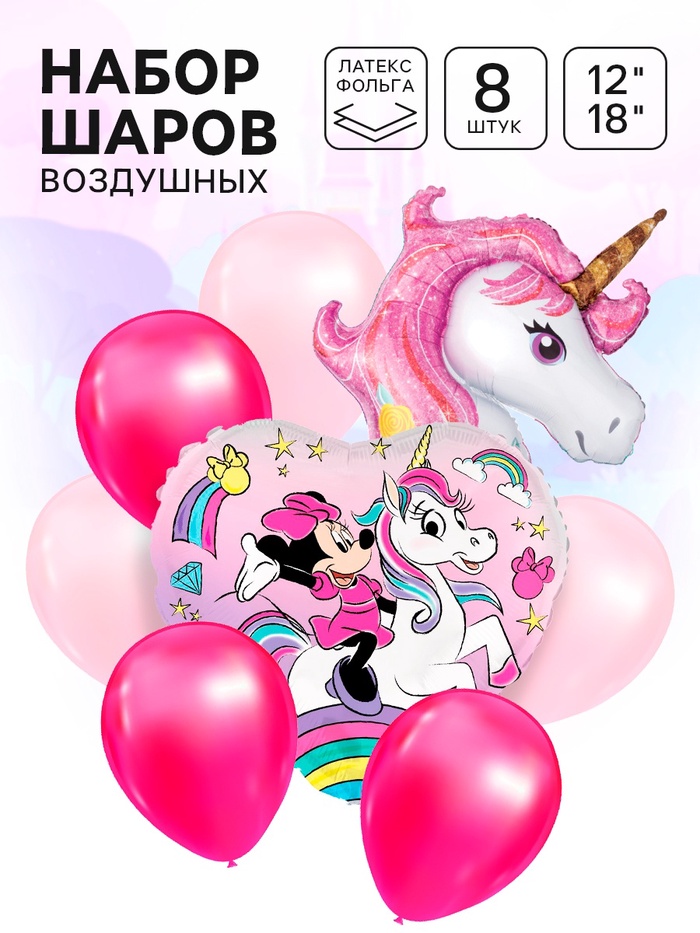 Шары воздушные, набор «Единорог», 8 шт, фольга, латекс Минни Маус — Характеристики