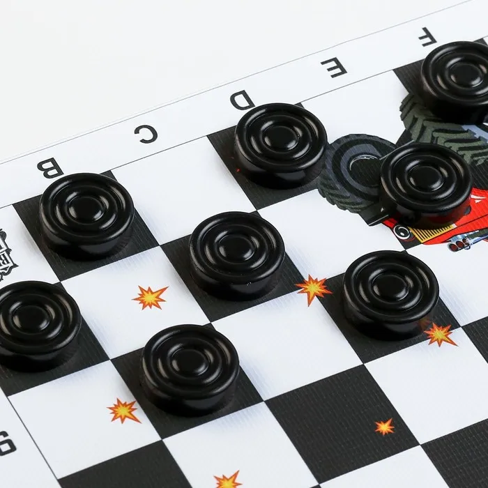 Шашки, настольная игра "Машинка", поле винил 30 х 30 см, d-3 см, h-0,9 см — Характеристики