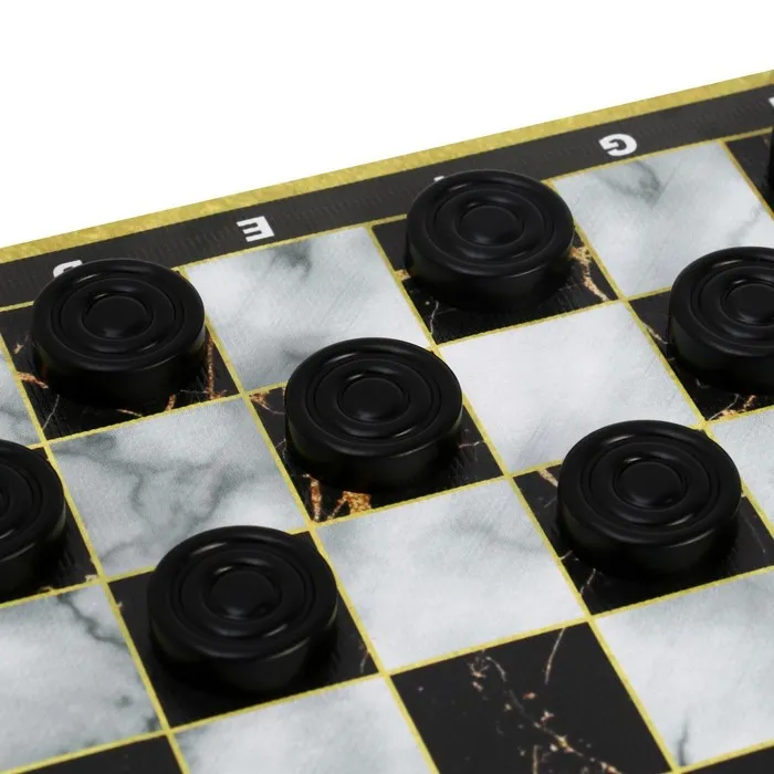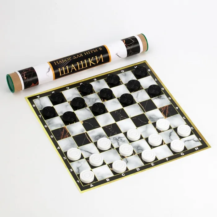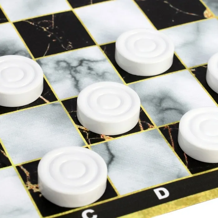 Шашки, настольная игра "Мрамор", поле винил, 30 х 30 см, 24 шт, d-3 см, h-0.9 см, в тубусе — Характеристики