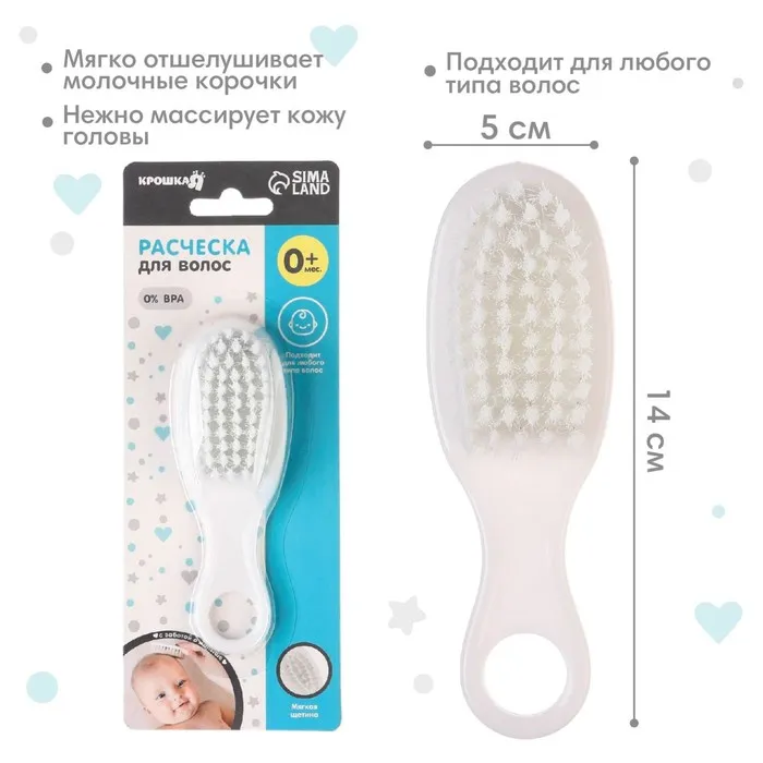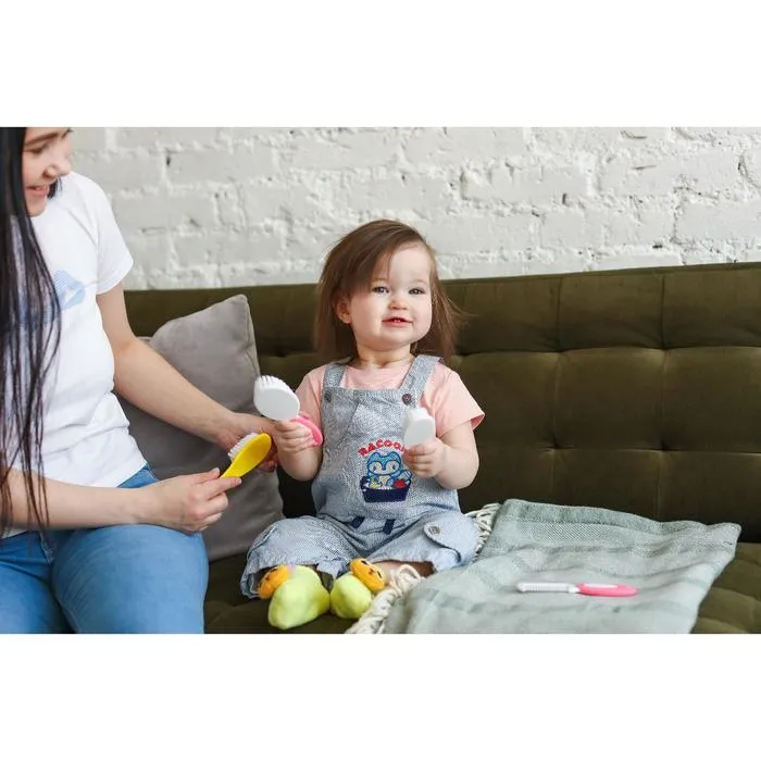 Расческа-щетка с мягкой щетиной и удобная расческа с закругленными зубчиками предназначены для малышей с первых дней жизни.