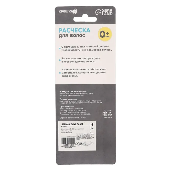 Щетка детская, для ухода за волосами, белая — Характеристики