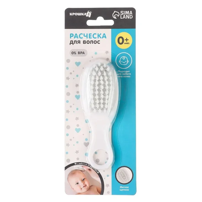 Мягкая пушистая щетка имеет удобную эргономичную ручку, улучшает кровообращение кожи головы, не царапая её. Нежный массаж расслабляет и успокаивает перед сном, а стимуляция волосяных луковиц ускоряет рост первых волос малыша. Щетка с мягким ворсом позволит пригладить волосики и придать им аккуратный вид. А с помощью расчески с частыми закругленными зубчиками удобно расчесывать запутавшиеся и скатавшиеся волосы.