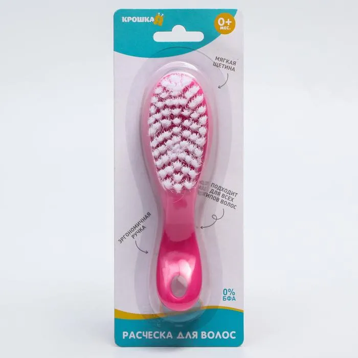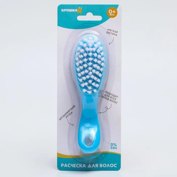 "Расческа-щетка с мягкой щетиной предназначена для малышей с первых дней жизни. Мягкая пушистая щетка имеет удобную эргономичную ручку, улучшает кровообращение кожи головы, не царапая её. Нежный массаж расслабляет и успокаивает перед сном, а стимуляция волосяных луковиц ускоряет рост первых волос малыша. Щетка с мягким ворсом позволит пригладить волосики и придать им аккуратный вид. Размер и форма подобраны с учётом возрастных особенностей. Аксессуар удобно ложится в маленькую ладошку крохи. Изготовлено из безопасного материала - не содержит бисфенол А."