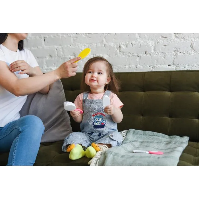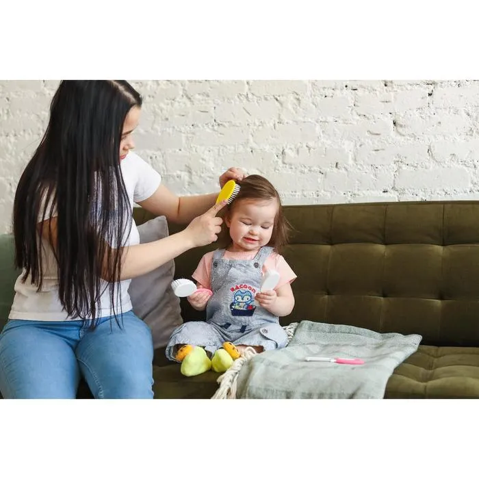 "Расческа-щетка с мягкой щетиной предназначена для малышей с первых дней жизни. Мягкая пушистая щетка имеет удобную эргономичную ручку, улучшает кровообращение кожи головы, не царапая её. Нежный массаж расслабляет и успокаивает перед сном, а стимуляция волосяных луковиц ускоряет рост первых волос малыша. Щетка с мягким ворсом позволит пригладить волосики и придать им аккуратный вид. Размер и форма подобраны с учётом возрастных особенностей. Аксессуар удобно ложится в маленькую ладошку крохи. Изготовлено из безопасного материала - не содержит бисфенол А."