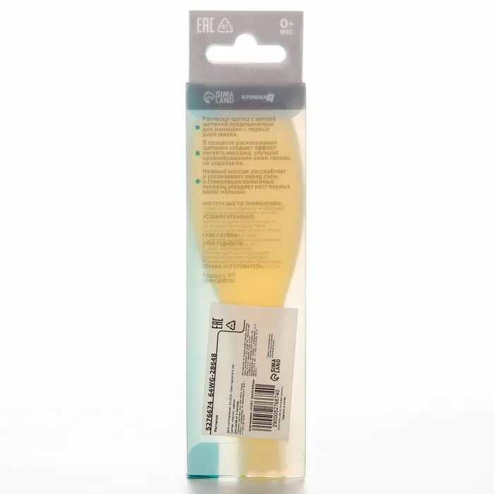 Щетка детская, для ухода за волосами, жёлтая — Характеристики