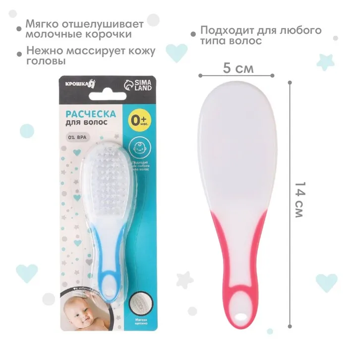 "Расческа-щетка с мягкой щетиной предназначена для малышей с первых дней жизни. Мягкая пушистая щетка имеет удобную эргономичную ручку, улучшает кровообращение кожи головы, не царапая её. Нежный массаж расслабляет и успокаивает перед сном, а стимуляция волосяных луковиц ускоряет рост первых волос малыша. Щетка с мягким ворсом позволит пригладить волосики и придать им аккуратный вид. Размер и форма подобраны с учётом возрастных особенностей. Аксессуар удобно ложится в маленькую ладошку крохи. Изготовлено из безопасного материала - не содержит бисфенол А."