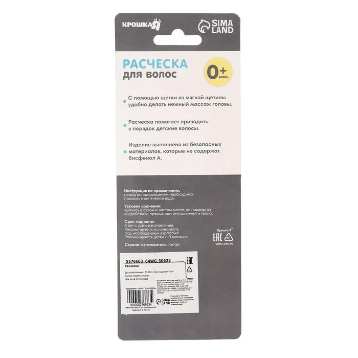 Щетка детская Крошка Я, для ухода за волосами, МИКС — Характеристики