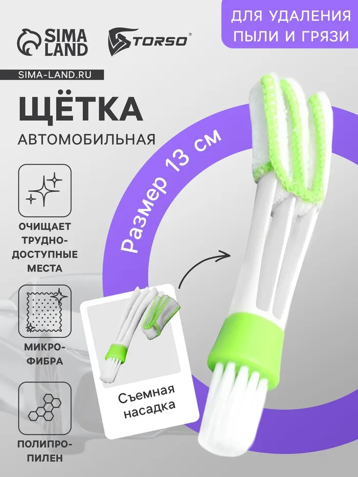 Щетка для чистки прекрасно подходит для чистки труднодоступных мест, таких как воздуховоды, подстаканники, соединения торпеды.