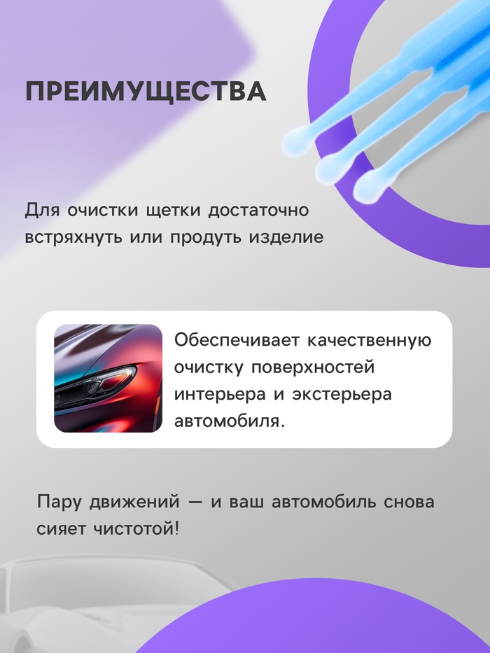 Щетка для детейлинга, набор 100 шт., синий — Характеристики