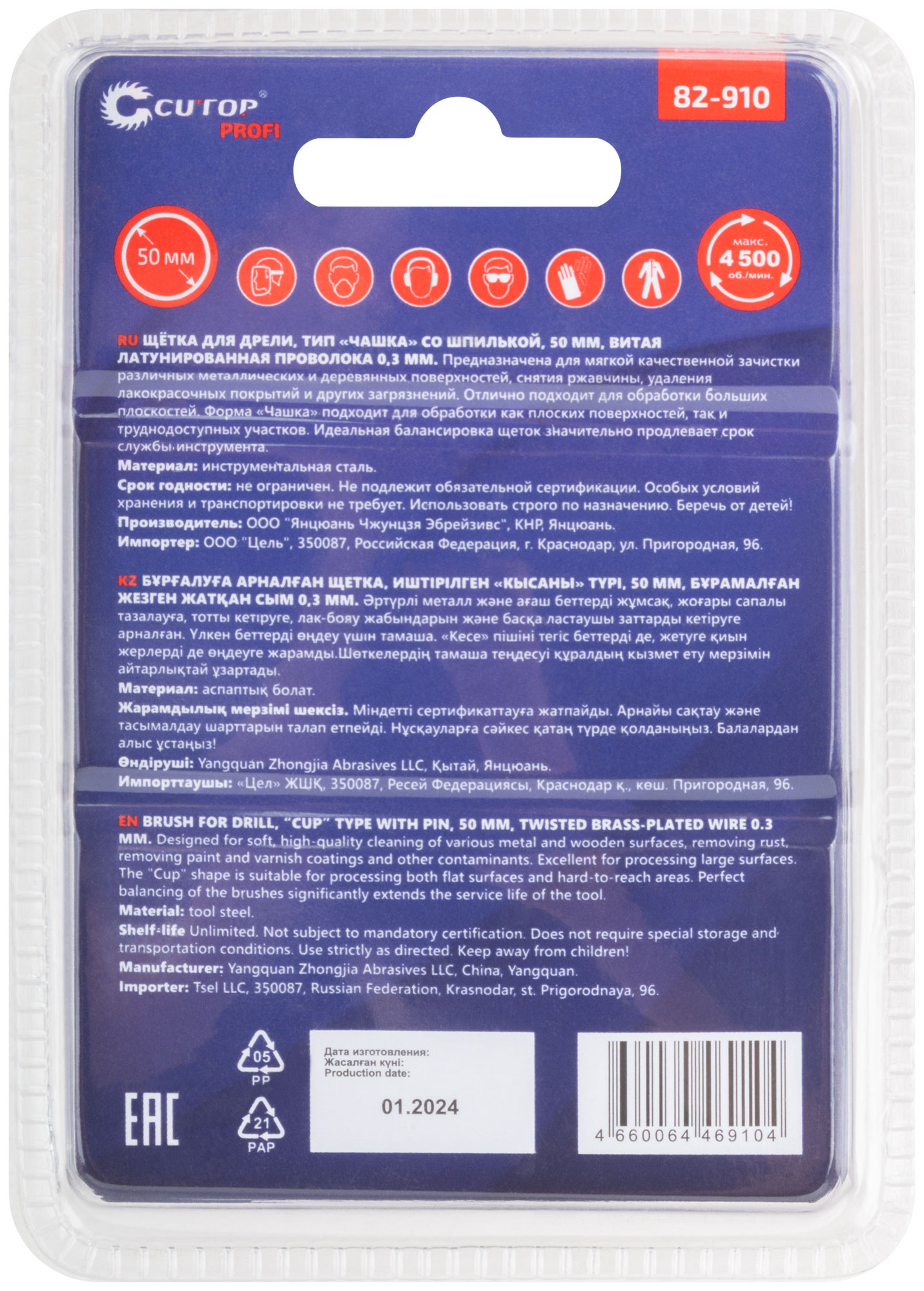 Эта щетка-чашка от CUTOP Profi идеальна для мягкой и качественной зачистки различных металлических и деревянных поверхностей. Она поможет эффективно удалить ржавчину, старые лакокрасочные покрытия и другие загрязнения. Благодаря форме «Чашка», щетка обеспечивает хорошую площадь прилегания к поверхности, что особенно полезно при обработке больших плоскостей.