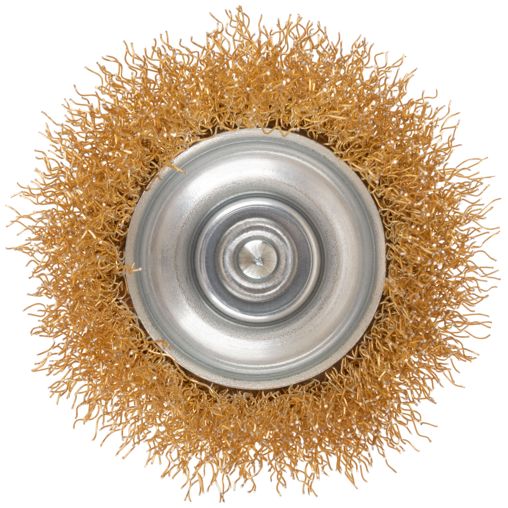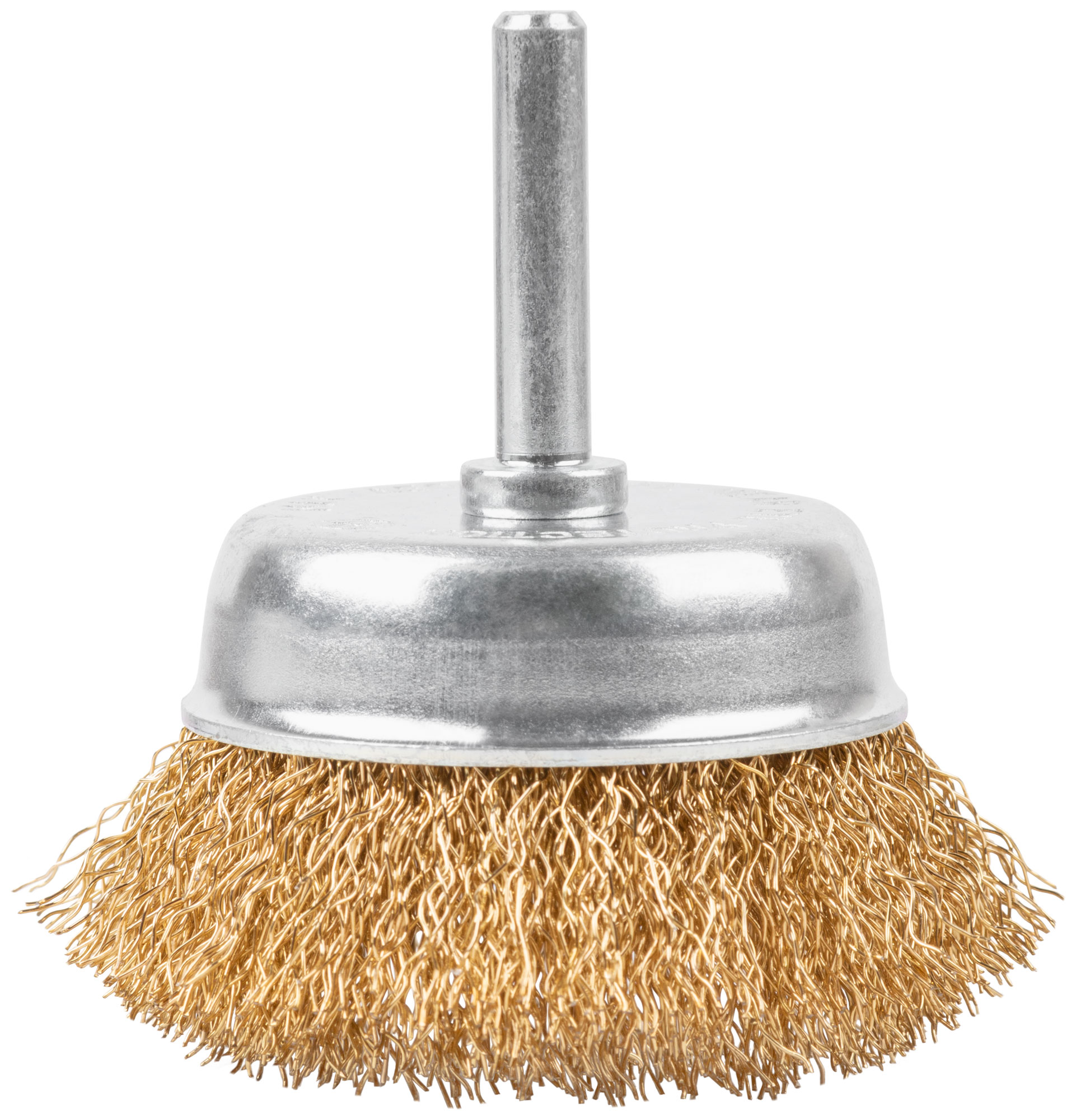 Щетка выполнена в форме чашки, что увеличивает площадь прилегания к обрабатываемой поверхности, обеспечивая однородность зачистки. Мягкость латунированной проволоки позволяет работать с различными материалами, не повреждая их.