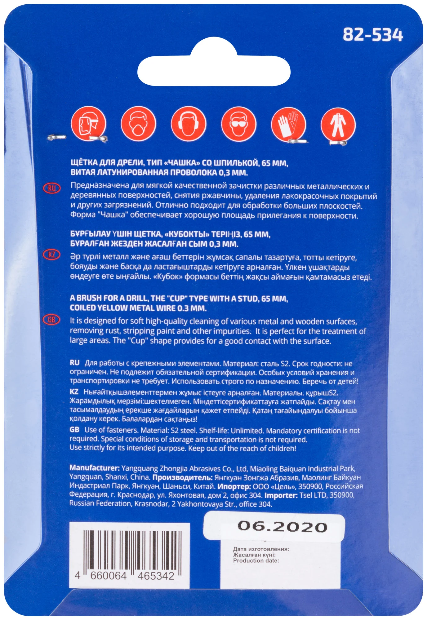 Щетка изготовлена из витой латунированной проволоки толщиной 0,3 мм, что гарантирует мягкую и бережную обработку материалов. Типоразмер 65 мм делает её универсальным инструментом для использования с большинством стандартных дрелей.