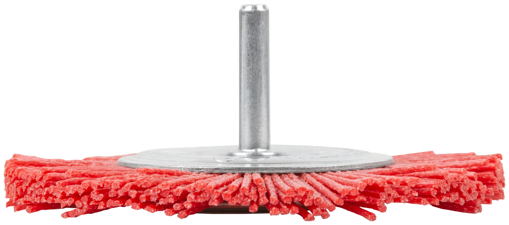 Изготовлена из нейлона с зернистостью Р80, что делает её идеальной для удаления загрязнений, ржавчины и заусенцев с различных поверхностей. Плоская форма щетки позволяет легко обрабатывать углы, пазы и другие труднодоступные места.