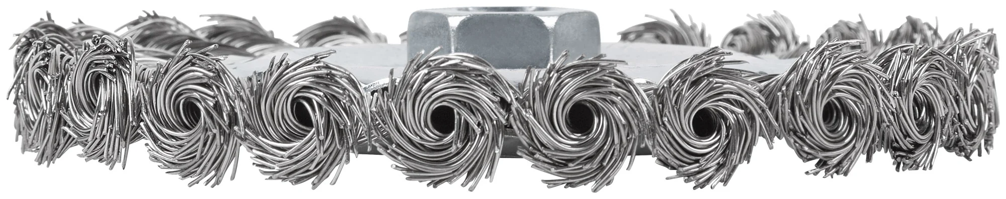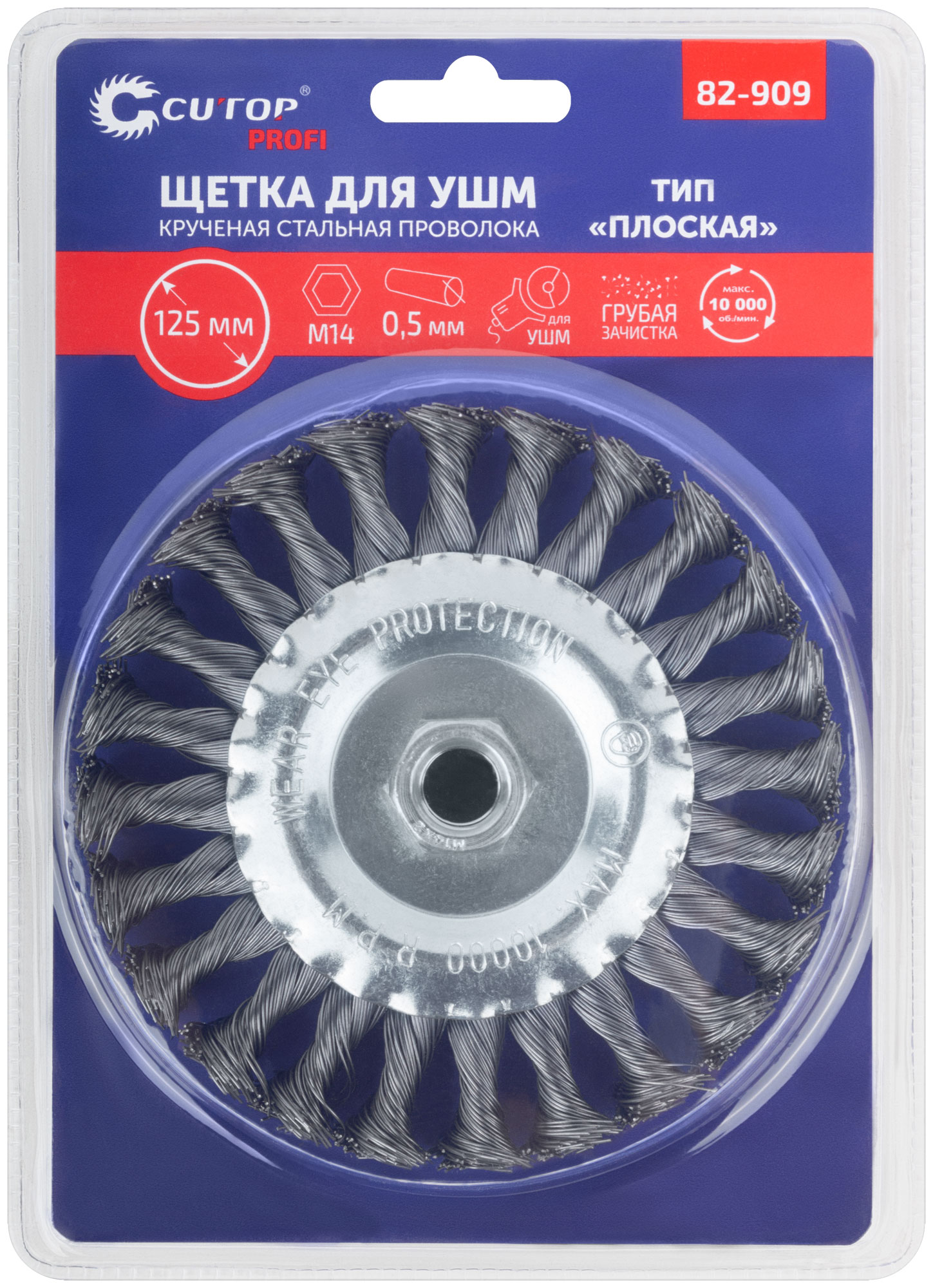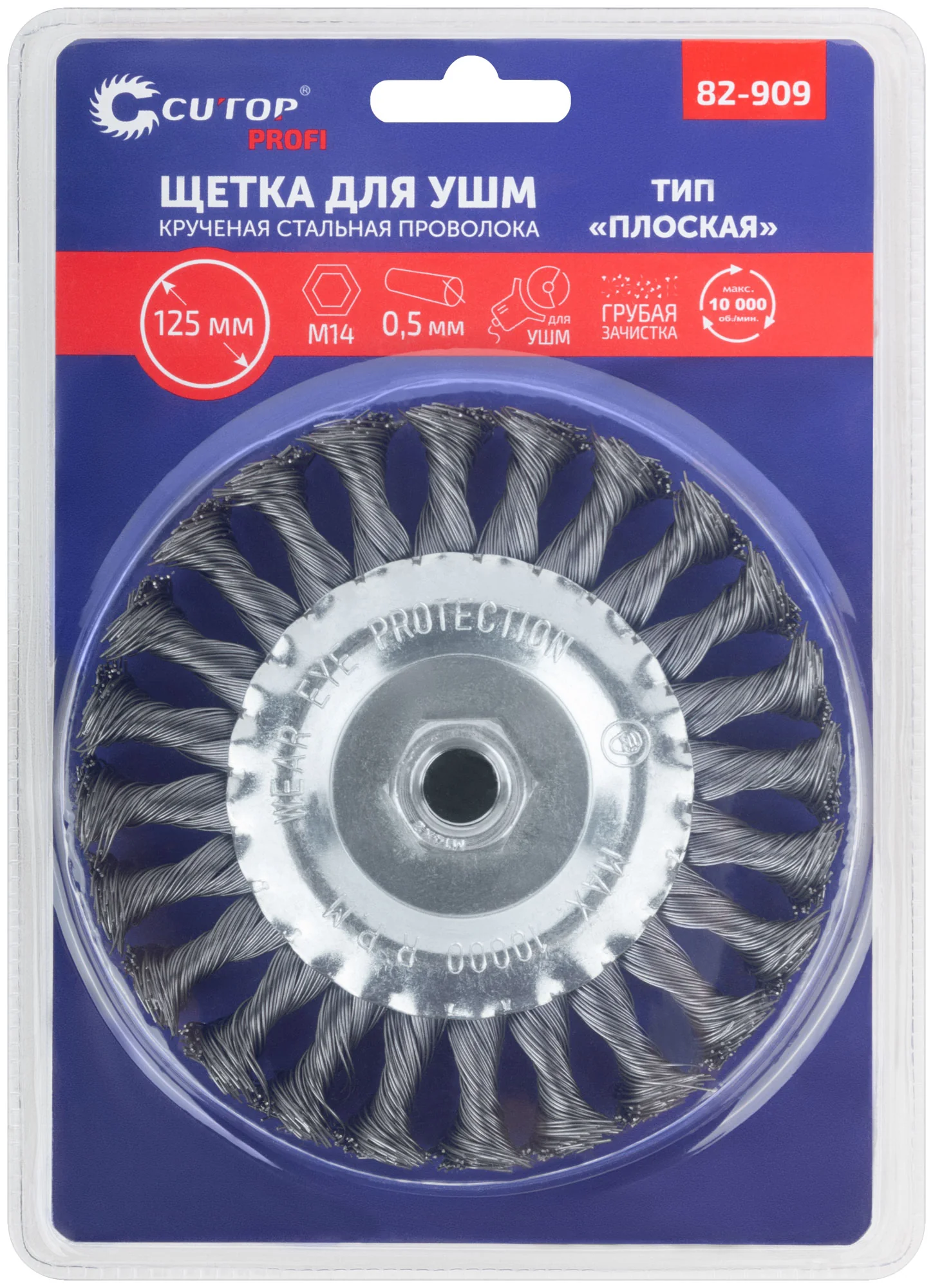 Изготовлена из прочной стальной проволоки диаметром 0,5 мм, что обеспечивает высокую жесткость и долговечность. Удобно крепится к углошлифовальной машине благодаря резьбе М14. Упакована в блистер, что облегчает хранение и транспортировку.