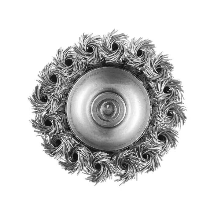 Металлическая кручёная щётка чашечного типа для дрели ТУНДРА предназначена для грубой зачистки металлических поверхностей от ржавчины и грязи, удаления неровностей и сглаживания сварных швов.