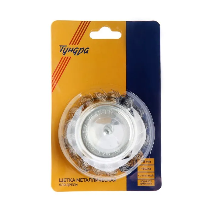 Щетка металлическая для дрели ТУНДРА, со шпилькой, крученая проволока, «чашка», 75 мм