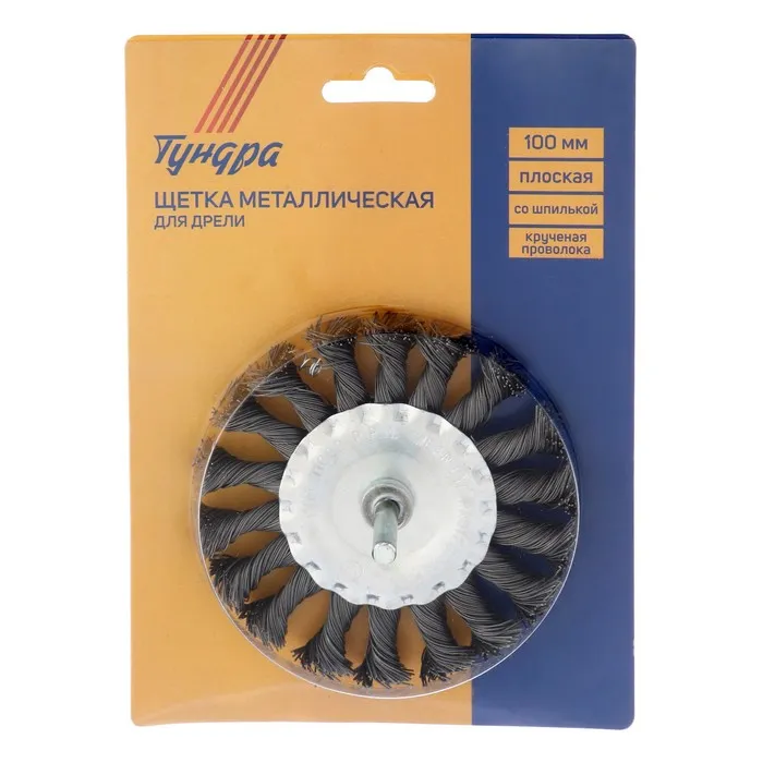 Щетка металлическая для дрели ТУНДРА, со шпилькой, крученая проволока, плоская, 100 мм — Характеристики