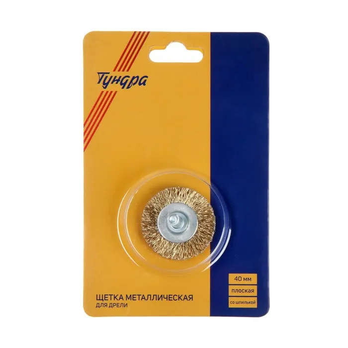 Щетка металлическая для дрели ТУНДРА, со шпилькой, плоская, 40 мм — Характеристики